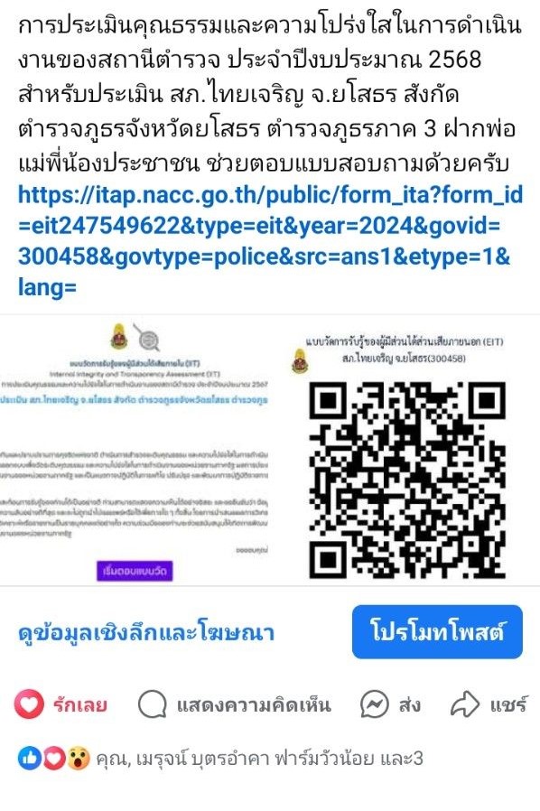 มีการประชาสัมพันธ์ผ่าน FACEBOOK : สภ.ไทยเจริญ จว.ยโสธร